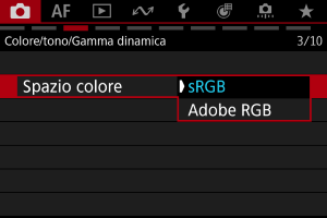 La gamma di colori riproducibili è denominata "spazio colore". Per lo scatto normale, si consiglia di scegliere sRGB.