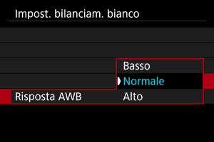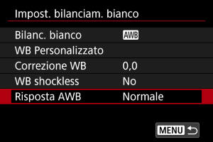 È possibile impostare la reattività del bilanciamento del bianco automatico. Si può scegliere tra tre livelli diversi di reattività in base alle condizioni di scatto.