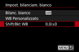 per annullare tutte le impostazioni di [Shift/Bkt WB].