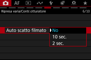 La registrazione del filmato può essere avviata mediante la funzione di autoscatto.