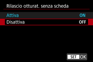 Selezionare [: Rilascio otturat. senza scheda] ().