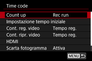 Per configurare il timecode, utilizzare [: Time code].