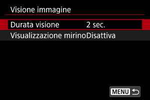 Impostare su [Attiva] per visualizzare nel mirino le immagini immediatamente dopo lo scatto.