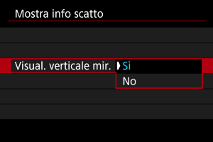 È possibile selezionare la modalità di visualizzazione delle informazioni sul mirino quando si scattano foto in verticale.