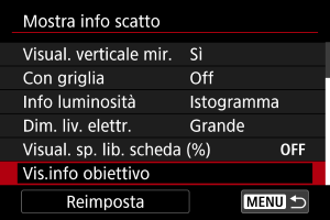 È possibile visualizzare le informazioni sull'obiettivo in uso.