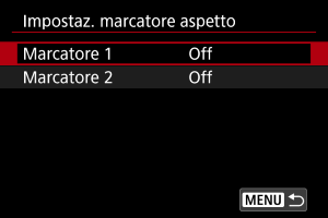 Se si modifica il rapporto dimensionale quando si modifica il filmato registrato, è possibile visualizzare fino a due marcatori aspetto nella schermata di registrazione di filmati (durante lo standby e la registrazione) per tenere presente l'angolo di campo finale dopo l'editing.