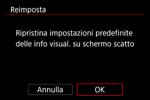 È possibile personalizzare i dettagli e le schermate delle informazioni visualizzate sullo schermo o nel mirino durante lo scatto.