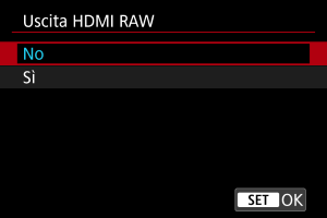 Impostare su [Sì] per registrare filmati RAW dal terminale HDMI su dispositivi compatibili.