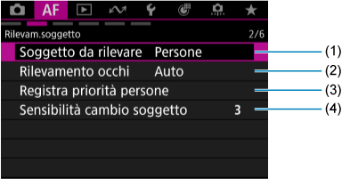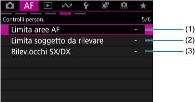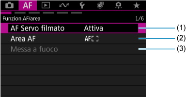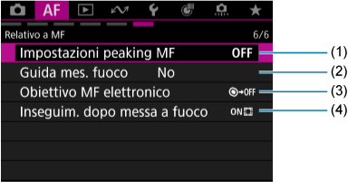 - [Messa a fuoco] è visualizzato quando si utilizzano obiettivi senza selettore di modalità della messa a fuoco.