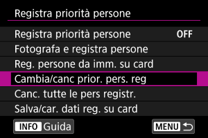 Selezionare [Cambia/canc prior. pers. reg].