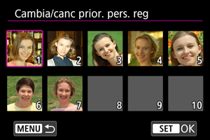 È possibile modificare la priorità di rilevamento ridisponendo le persone registrate. È anche possibile rimuovere le persone registrate.