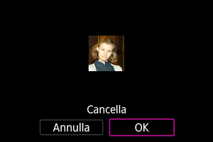 - La fotocamera memorizza le immagini dei volti e le informazioni correlate registrate usando questa funzione. Eliminare tutte le informazioni registrate prima di smaltire la fotocamera o trasferirne la proprietà.