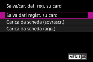 Selezionare [Salva/car. dati reg. su card].
