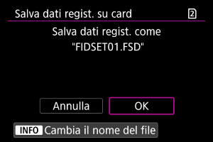 - Selezionare [Salva dati regist. su card] per salvare i dati registrati della fotocamera sulla scheda.