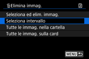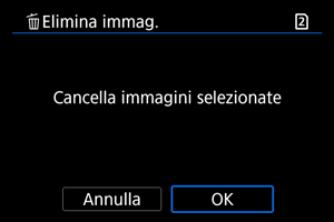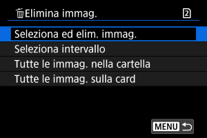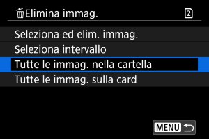 : Elimina immag.], tutte le immagini nella cartella o sulla scheda vengono eliminate.