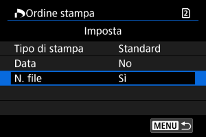 - Impostare le opzioni [Tipo di stampa], [Data] e [N. file].