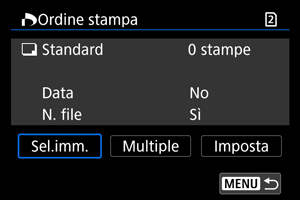 - Non è possibile specificare immagini e filmati RAW/HEIF per la stampa. Le immagini e i filmati RAW/HEIF non vengono impostati per la stampa anche se si specificano tutte le immagini con [Multiple].
