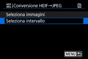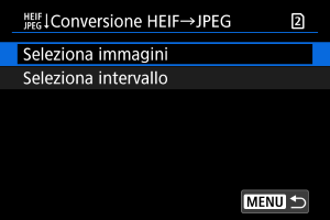 per selezionare un'immagine HEIF da convertire in JPEG, quindi premere