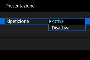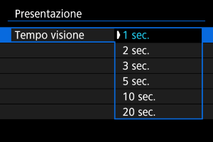 - Impostare [Tempo visione] e [Ripetizione] (riproduzione ripetuta) per le foto.