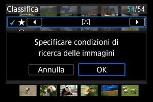È possibile filtrare la visualizzazione delle immagini in base alle condizioni di ricerca. Dopo aver impostato le condizioni di ricerca delle immagini, è possibile riprodurre e visualizzare solo le immagini trovate. È inoltre possibile proteggere, classificare, riprodurre una presentazione, eliminare e applicare altre operazioni alle immagini filtrate.
