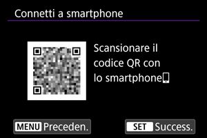 - Se Camera Connect non è installato, utilizzare lo smartphone per scansionare il codice QR sullo schermo, andare su Google Play o sull'App Store per installare Camera Connect, quindi premere