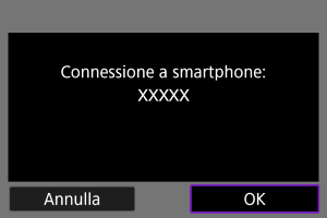 - Se viene visualizzata la schermata qui sopra sulla fotocamera, significa che è stata stabilita una connessione.