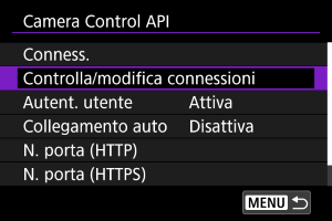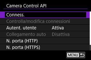 Uso di Camera Control API (CCAPI)