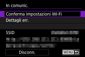 Dopo un errore di connessione Wi-Fi, è possibile verificare i dettagli dell'errore ().