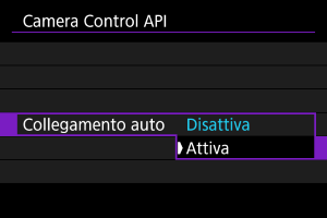 Se si seleziona [Attiva], viene stabilita automaticamente una connessione la volta successiva che si avvia la fotocamera dopo averla spenta.