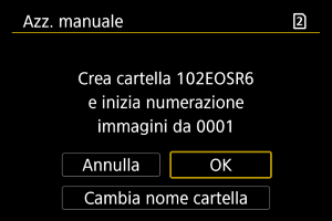 - Selezionare [OK] per creare una nuova cartella; la numerazione dei file inizierà da 0001.