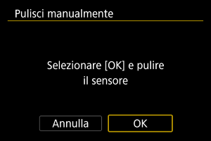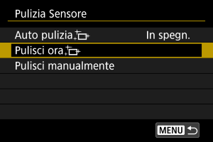- Anche se la pulizia del sensore viene ripetuta, il risultato non cambia di molto. L'opzione [Pulisci ora