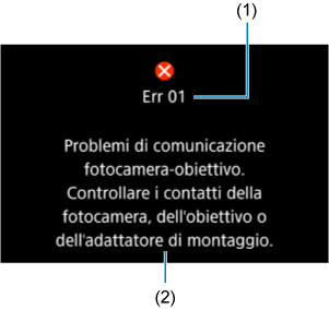 Se si verifica un problema con la fotocamera, viene visualizzato un messaggio di errore. Seguire le istruzioni visualizzate sullo schermo.
