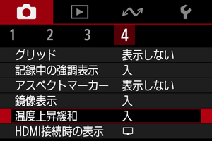 ]にすると消費電力を抑え、撮影待機状態のカメラ内部の温度上昇を抑えます。