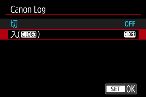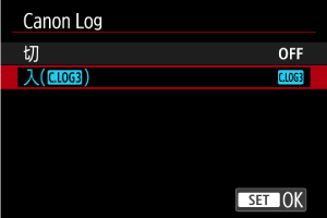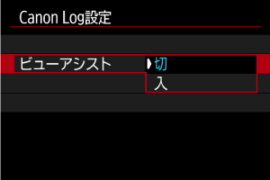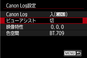 - [入]に設定しても、カードに記録される映像には影響しません(Canon Logの特性でカードに記録されます)。また、HDMI出力映像は、Canon Logの特性で出力されます(ビューアシストは行われません)。