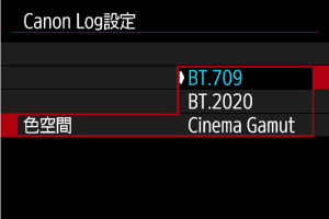 カード記録時の色空間を、[BT.709][BT.2020][Cinema Gamut]から選ぶことができます。