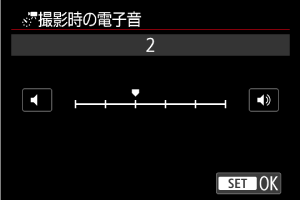 - [0]に設定すると、撮影が行われるときに電子音が鳴らなくなります。