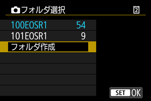 - フォルダ名は、「100EOSR1」のように先頭3桁の数字(フォルダ番号)と、5文字の英数字で構成されています。1つのフォルダには、画像が最大9999枚保存されます(画像番号0001~9999)。フォルダ内の画像がいっぱいになると、番号が1つ繰り上がったフォルダが自動的に作成されます。また、強制リセット()を行ったときもフォルダが自動的に作成されます。フォルダは100~999まで作成することができます。