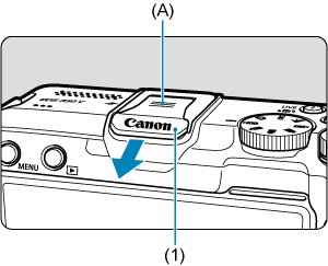 - シューカバー(1)の(A)の部分に指をかけて矢印の方向に引き抜きます。取り外したシューカバーは、紛失しないように保管してください。