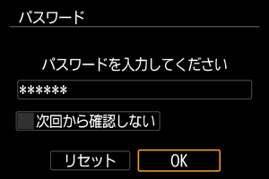 以下の場合、パスワード入力画面で[次回から確認しない]にチェックを付けてください。