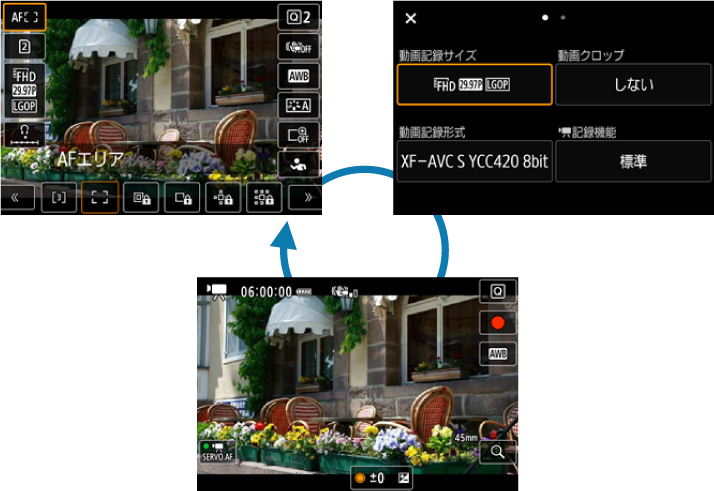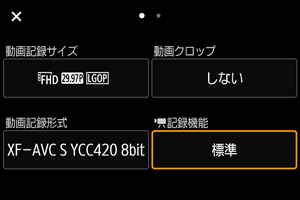 静止画撮影時と同様、ボタンを押すとクイック設定画面が表示されます。[