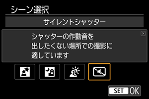 - サイレントシャッター機能は、被写体の肖像権やプライバシーなどに十分配慮した上で、お客様の責任において使用してください。