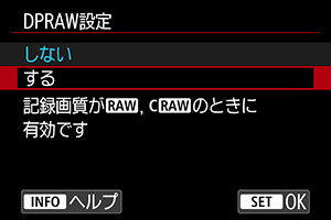 - デュアルピクセル情報が付加されたRAW画像(DPRAW画像)が記録されます。
