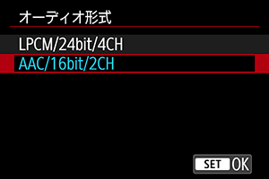 の設定は[AAC/16bit/2CH]に固定されます。