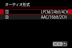 動画撮影の録音で使用するオーディオ形式を選ぶことができます。