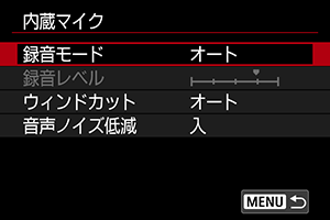 内蔵マイク、またはウインドカットに対応したマルチアクセサリーシュー対応マイクを使用するときに設定できます。
