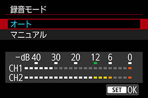 [録音モード]が[マニュアル]のときに設定することができます。