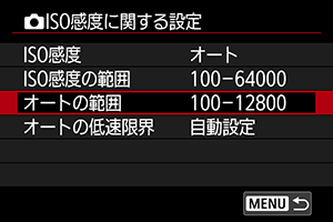 ISO感度に関する設定]の[ISO感度]で設定することもできます。