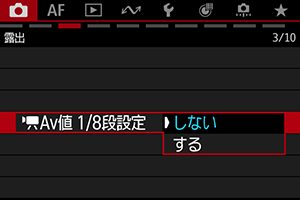 RFレンズを使用した動画撮影時に、絞り数値を1/8段刻みに設定することができます。この機能は、撮影モードが[][][][]のときに設定できます(機能します)。