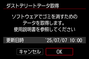 なお、EOS用ソフトウェアのDigital Photo Professionalによる自動ゴミ消し処理については、Digital Photo Professional使用説明書を参照してください。