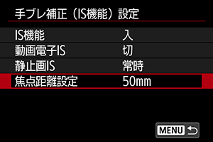 - レンズ通信に対応したレンズを装着したときは、[焦点距離設定]は表示されません。